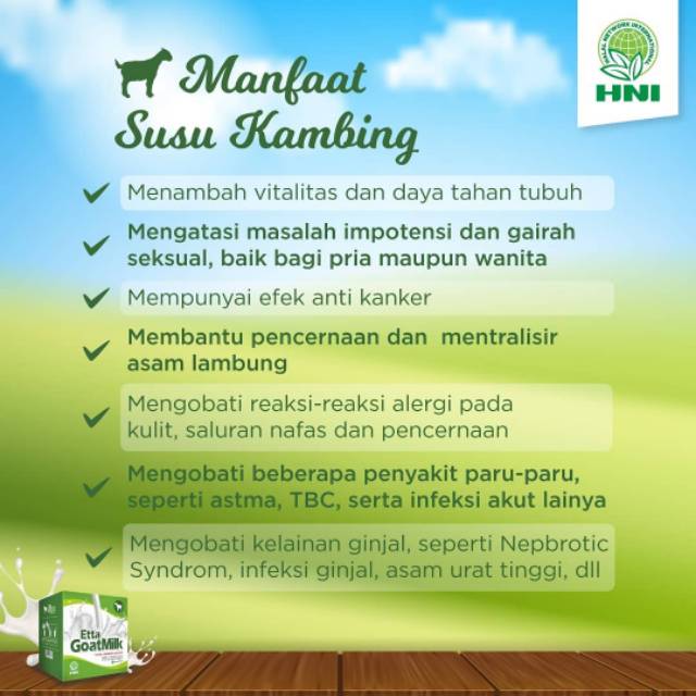 Susu kambing memang banyak khasiatnya. Susu kambing ini diambil dari jenis kambing etawa yang merupakan hasil persilangan antara kambing lokal indonesia. Mengandungi kadar asid lemak yang lebih. Susu kambing etawa gomars 200g terbuat dari susu kambing etawa yang diolah sedemikian rupa untuk menjaga manfaat dan kualitasnya, baik untuk diminum bagi balita sampai dengan lansia. Bagi kamu yang senang mengonsumsi susu kambing, kamu akan mendapatkan banyak manfaat kesehatan. Kelebihan susu kambing berbanding susu lembu. Memang banyak kebaikannya.ketahui jenama terbaik di malaysia & mengapa ramai orang memilihnya! Susu kambing juga tidak terkecuali. Nah, selain susu kambing biasa, ternyata terdapat juga susu kambing etawa. Susu kambing mengandungi protein yang lebih tinggi berbanding protein yang ada pada susu lembu. Khasiat susu kambing mencegah anemia dan osteoporosis. Kombinasi susu kambing dan kurma sangat bagus untuk kesuburan ikhtiar cara masyarakat arab memulihkan tenaga batin. * susu kambing secara semulajadi mencegah pembiakan organism yang merbahaya dlm badan manusia sekaligus menjadikan kita sihat.