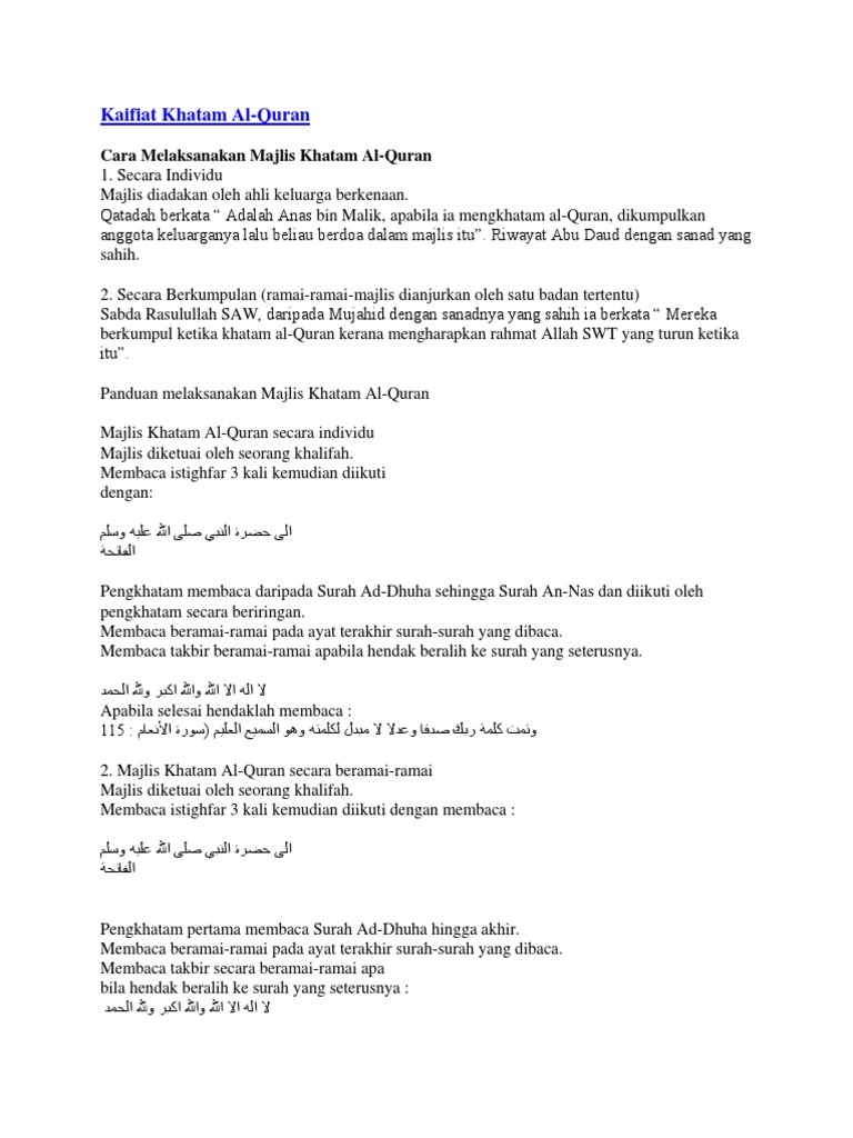 Panduan Khatam Al-Quran Pdf : Doa Khatam Quran Yang Ringkas Terjemahan Bahasa Melayu / 0%0% found this document useful, mark this document as useful.. Penjelasan dalam panduan ini menyentuh tentang takrif, objektif, kumpulan sasar, strategi pelaksanaan, agihan, kaedah pengajaran dan pembelajaran serta penilaian. Seringkali kita merasakan begitu sukar see a problem? It's more of formal event that celebrates your maturity and coming of age. 4 5.4 agihan iqra' dan agihan rancangan mingguan seperti yang dinyatakan dalam lampiran b adalah sebagai panduan di mana murid cemerlang boleh meneruskan bacaan. Doa dalam bahasa melayu (terjemahan).